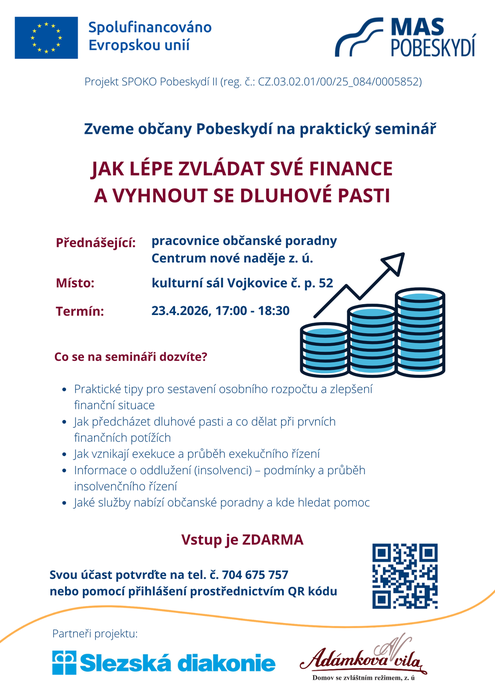 Úvod > Život v obci > Aktuality > MAS POBESKYDÍ - seminář Jak lépe zvládat své finance a vyhnout se dluhové pasti