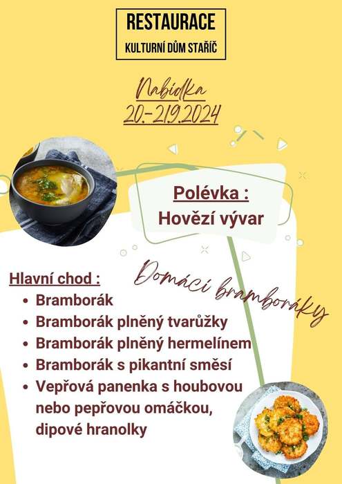 Restaurace kulturní dům Staříč - Nabídka 20.9. a 21.9.2024