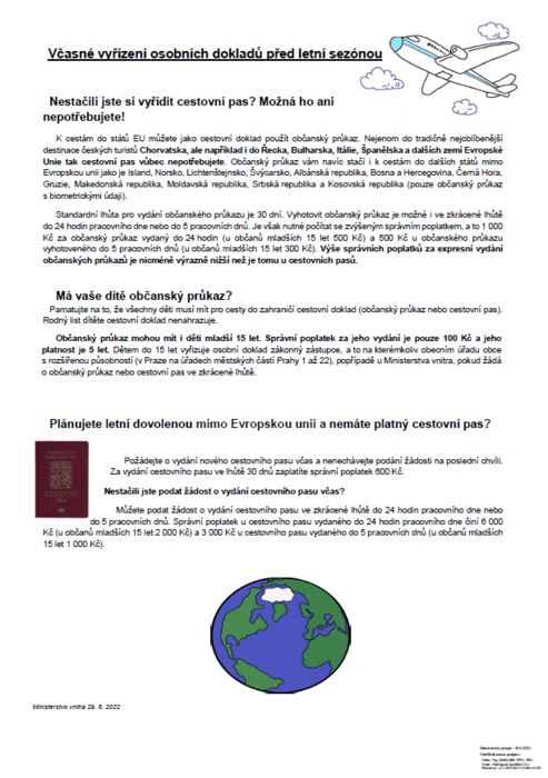Včasné vyřízení osobních dokladů před letní sezónou